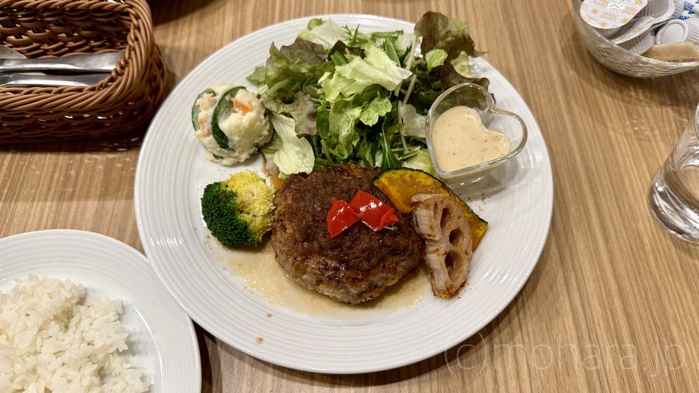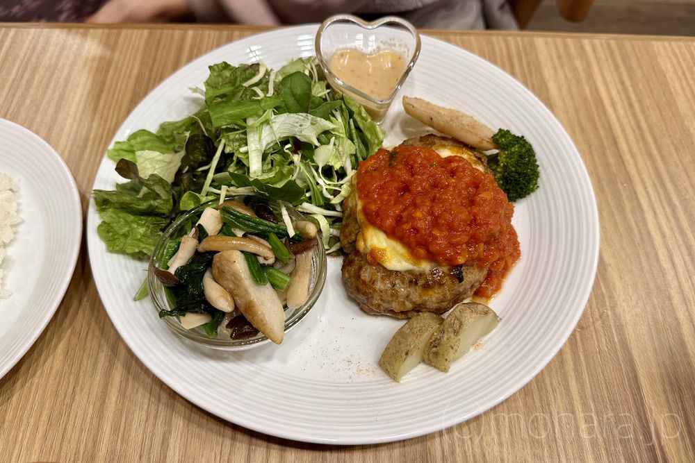 今回はいつものように会社帰りです。 A チーズハンバーグトマトソース掛け サラダ... -