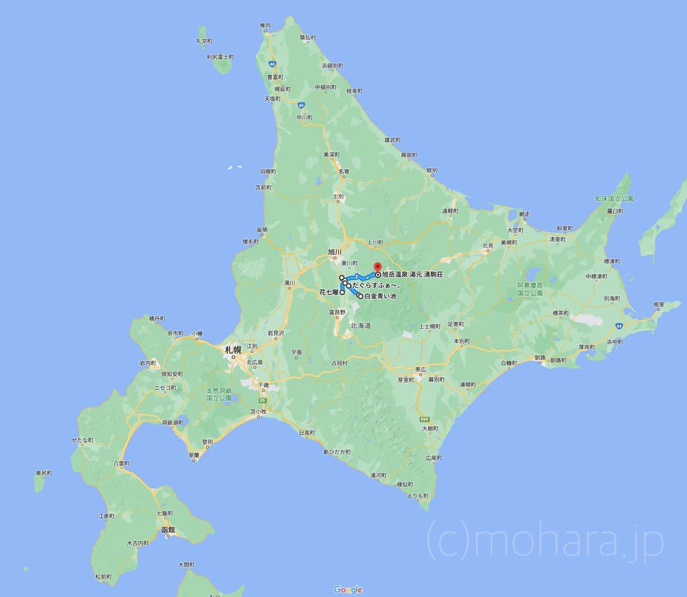 本日のルート 北海道に上陸して9日目に突入。本日は、北上して旭川経由で本日の宿... -