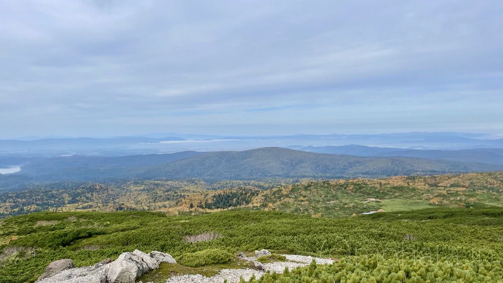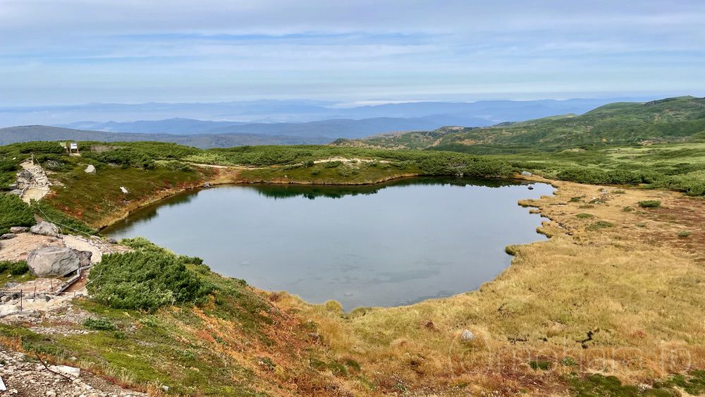 第一展望台から少し進んでから振り向くと、満月沼が。