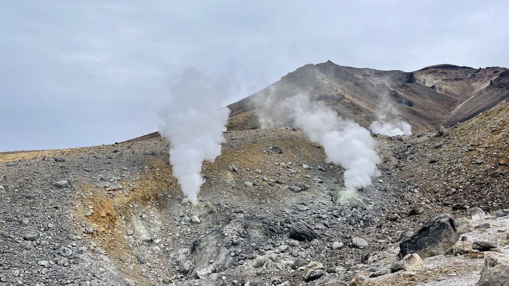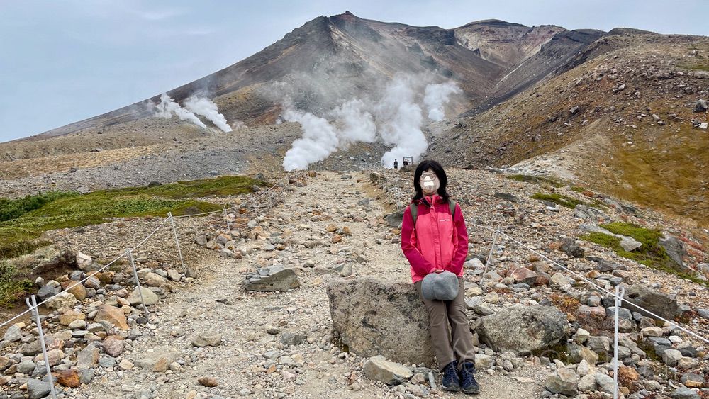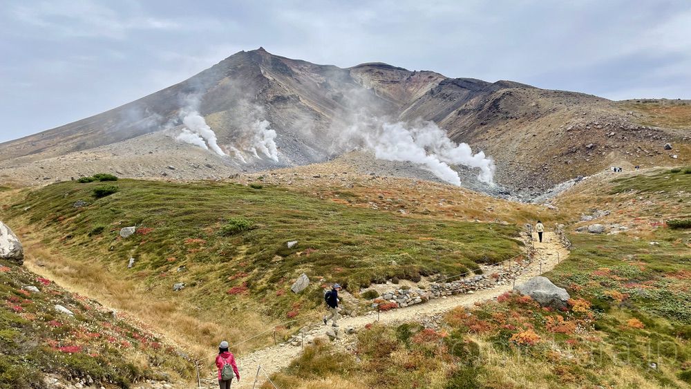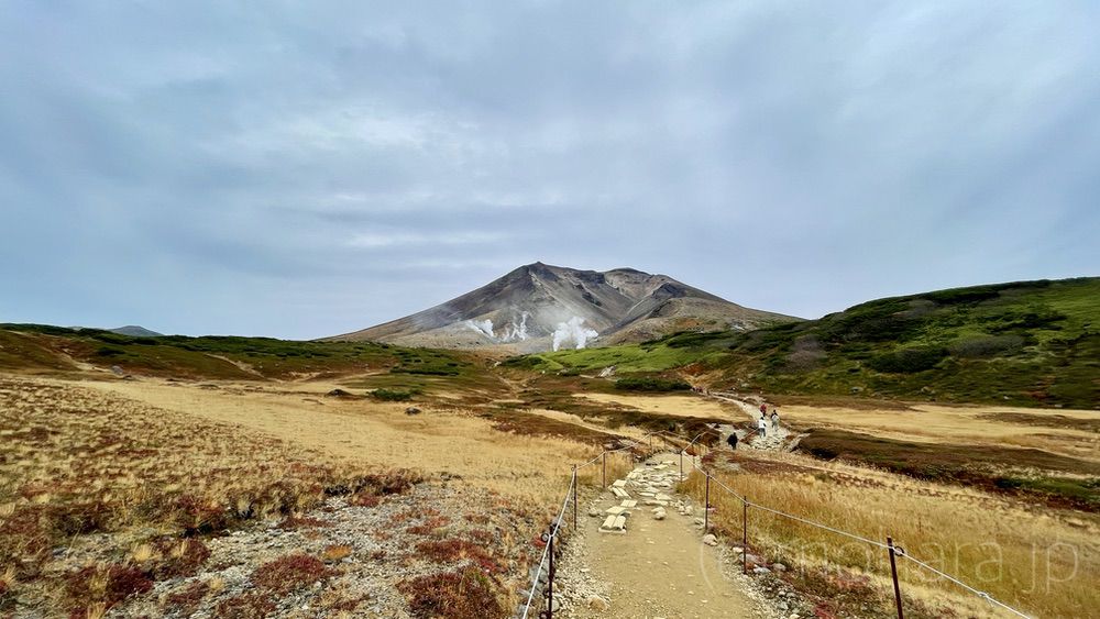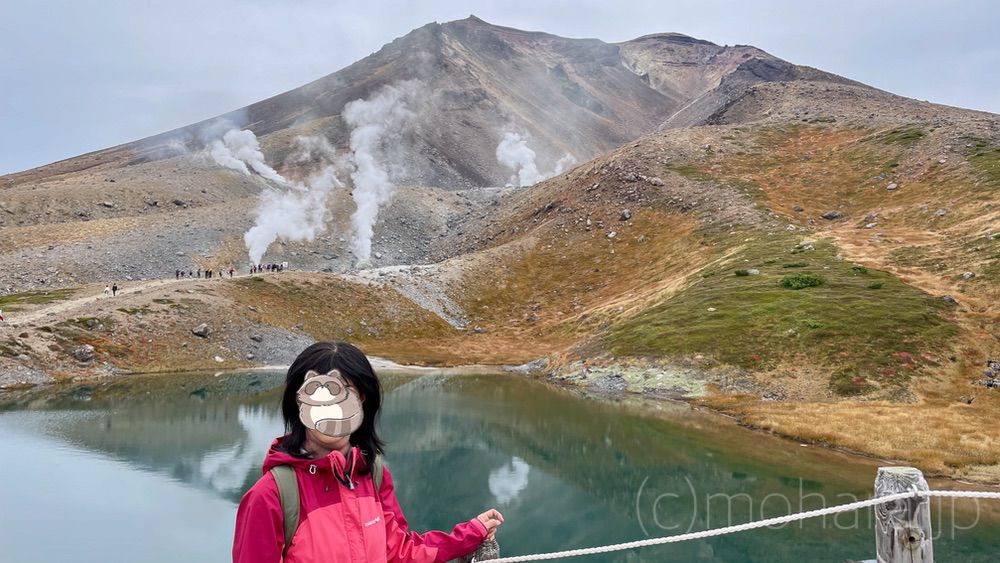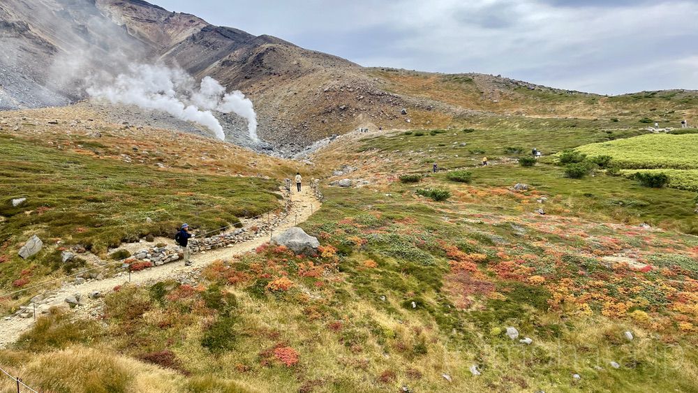 地獄谷と噴気孔の近くへ。