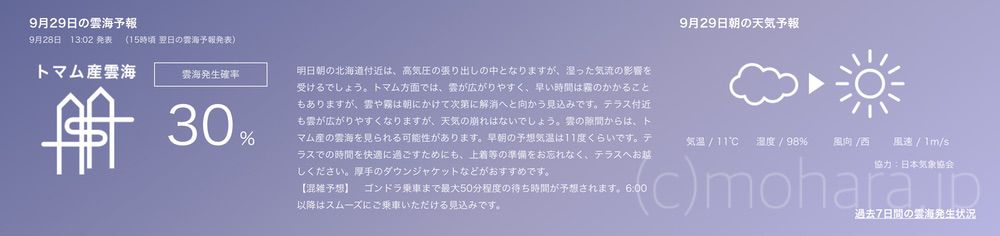 明日の早朝か明後日の早朝にトマムまで雲海を見に行こうと思っていたので、雲海予報を確認・・・