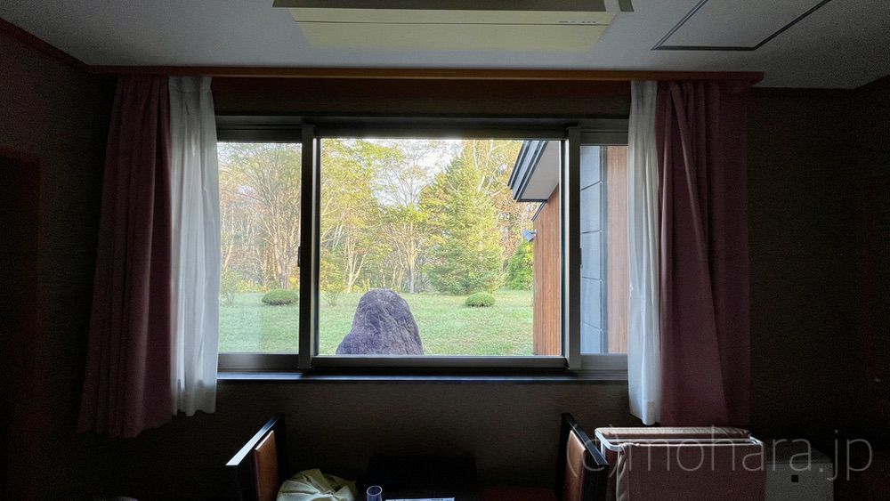 朝食後、部屋に戻って窓からの景色を眺めつつ食休みです。