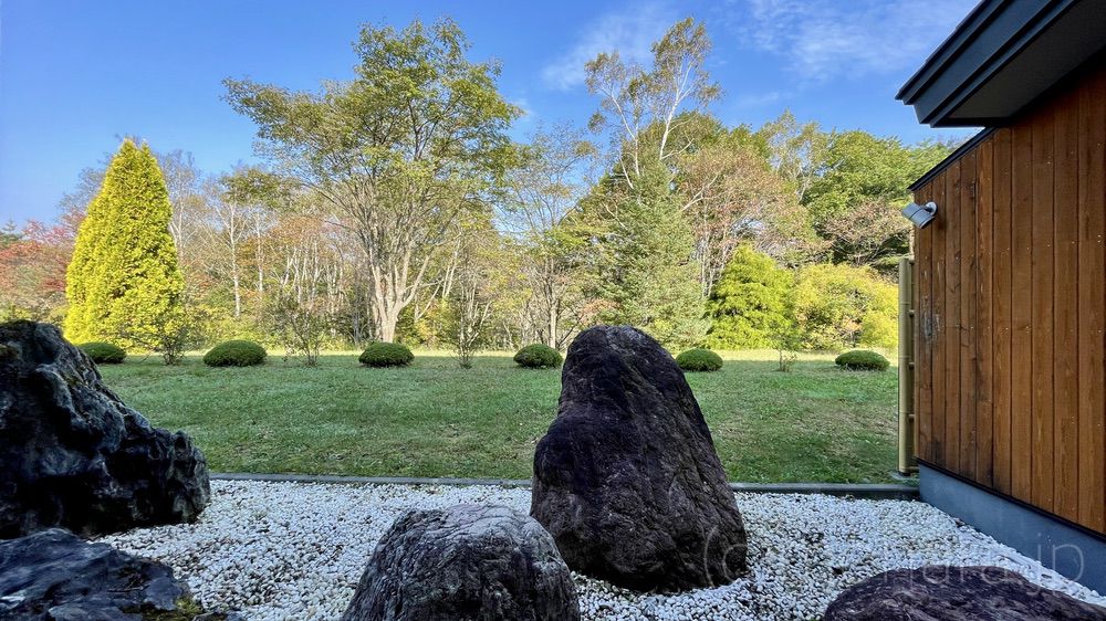 部屋の目の前の大きな石は、幸太郎石だそう。