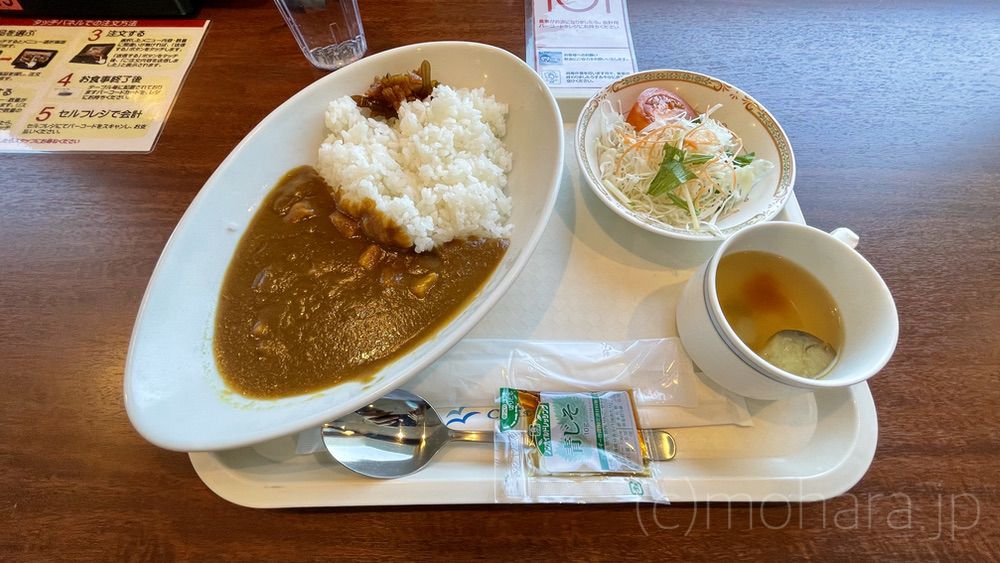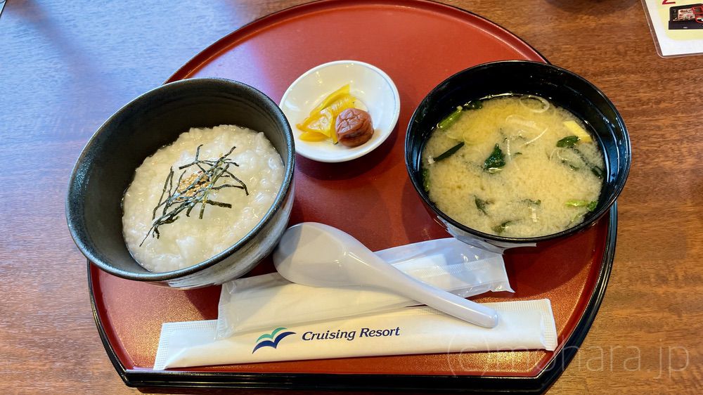 私は、朝カレーセット(700円)、クッキーママは少々お腹の調子がイマイチということで、お粥セット(450円)。